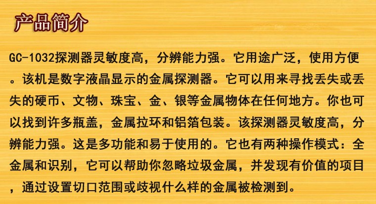 新款GC1032帶識別金屬探測器地下尋寶器