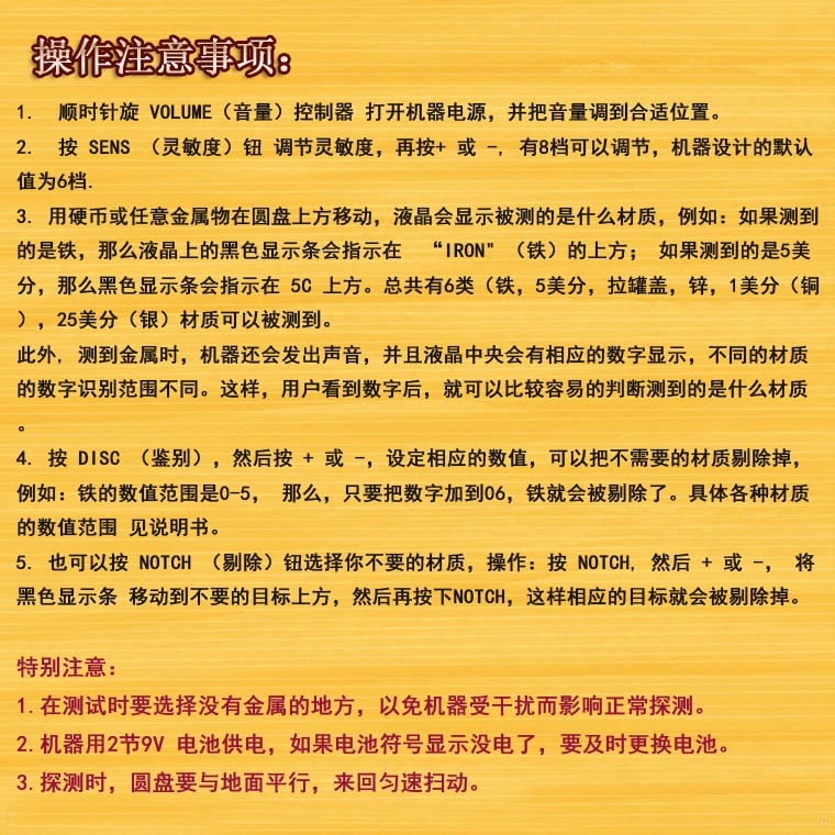 例如在一座古老的房子里尋找埋藏較深的遺物,由于長期以來地下掩埋著各種各樣被丟棄的金屬雜物如鐵釘、銅線、舊鎖、鐵鍋的碎片……等等,這些東西也會發出較 大的信號,在這種情況下,應把屋內的金屬家具搬出去,然后用地平衡檔探明那些金屬雜物并清除掉,經過仔細的工作,把淺土層中的金屬物品都挖出來之后, 才能向縱深的部位搜尋。探測工作是一件細致而又艱苦的作業,它要求操作者有耐心、信心和毅力。任何探測器都不能將地下的金屬物體顯示的一清二楚,它只能大概地預示金屬目標的位置,若要能準確地找到所需的東西,還要求操作者具有豐富的經驗,根據儀器的反應仔細地分析,以作出正確的判斷。