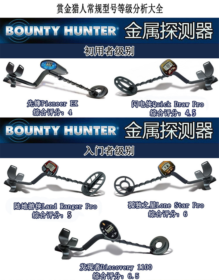 Bounty Hunter 賞金獵人成立于1975年,Bounty Hunter目前是地下野外探寶 地下金屬探測器制造商,地面探測產品,匯集了Bounty Hunter公司35年的技術經驗,擁有多項的技術,尤其適合有特 殊需要的人士使用。Bounty Hunter公司的產品均采用上設計,且采用優質的元器件制成,在業界贏得了良好聲譽。 Bounty Hunter 賞金獵人是地下野外探寶 地下金屬探測器品牌。