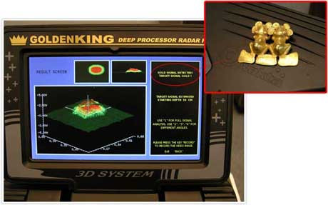 沒有看到聽說過這樣的新一代雷達黃金王探測器,因為它的確是一種探測雷達系統。黃金王(探測器)深處理器雷達生產使用的ARM9微處理技術的能力有150 %的進程更多的樣本,比普通的金屬探測器有210%速度!它是理圖像系統的目標實時成像探測。